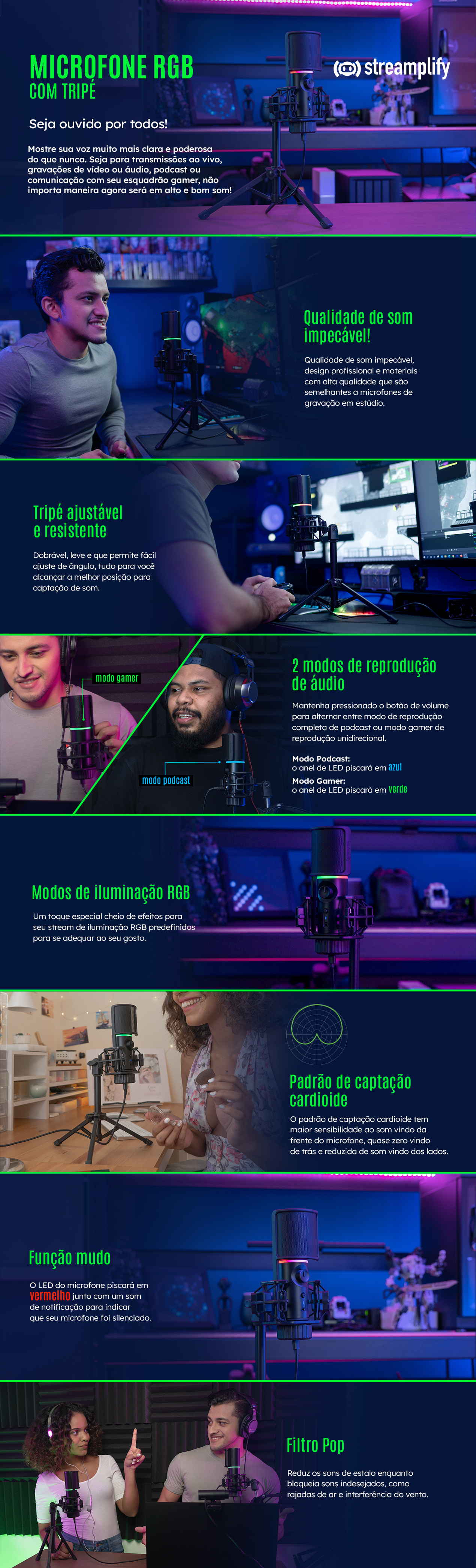 • Efeito de iluminação: 8 modos LED, 2 modos RGB