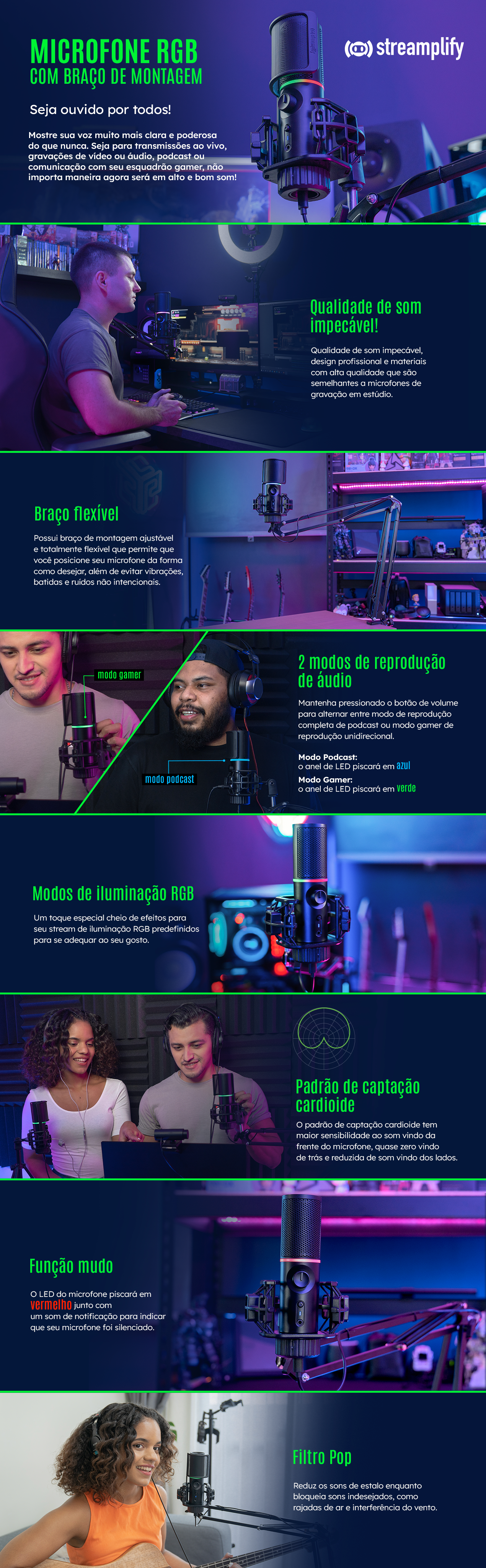 • Efeito de iluminação: 8 modos LED, 2 modos RGB