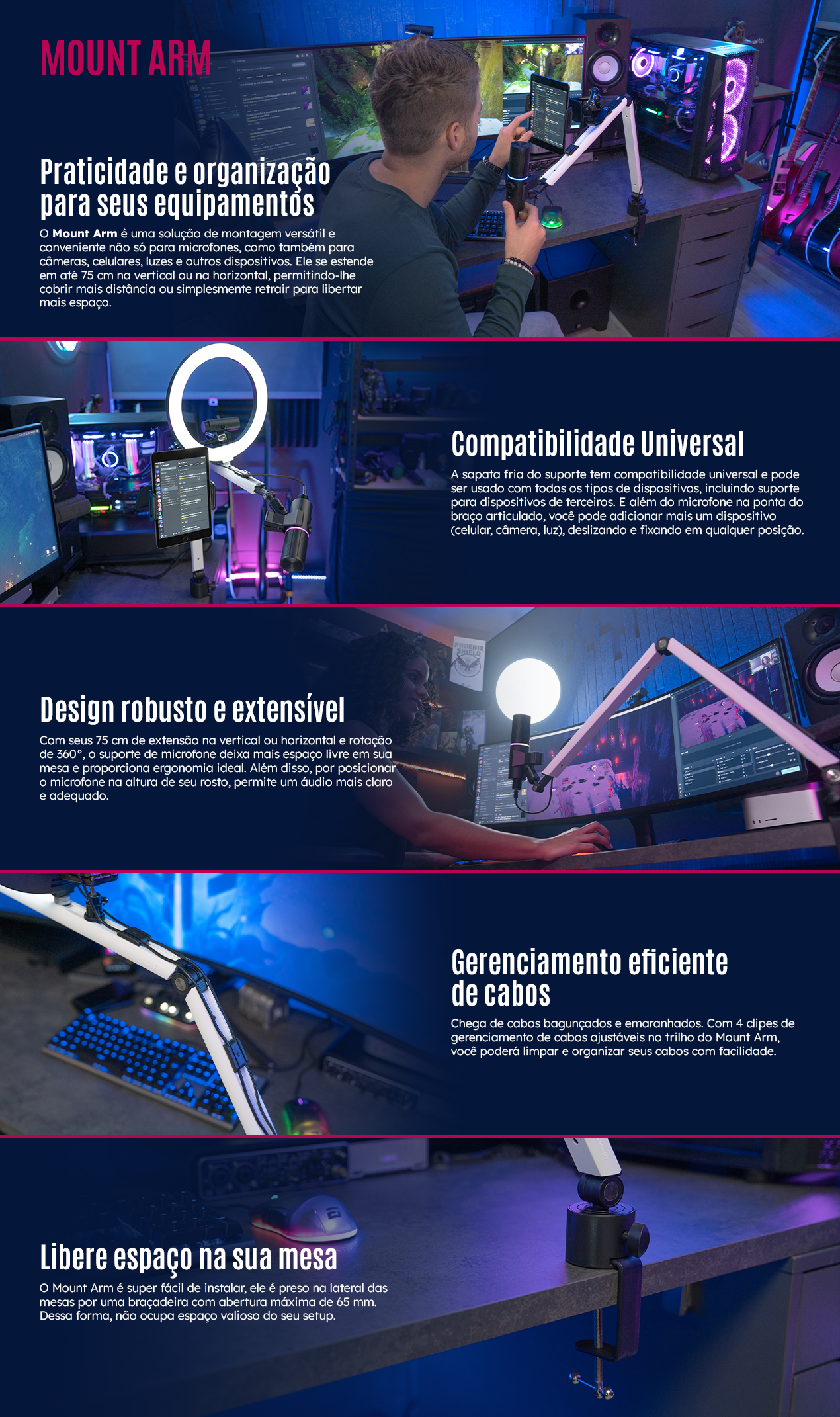• Acessórios: Clipe de microfone universal, adaptador de cabeça de esfera, suporte para smartphone e chave hexadecimal
